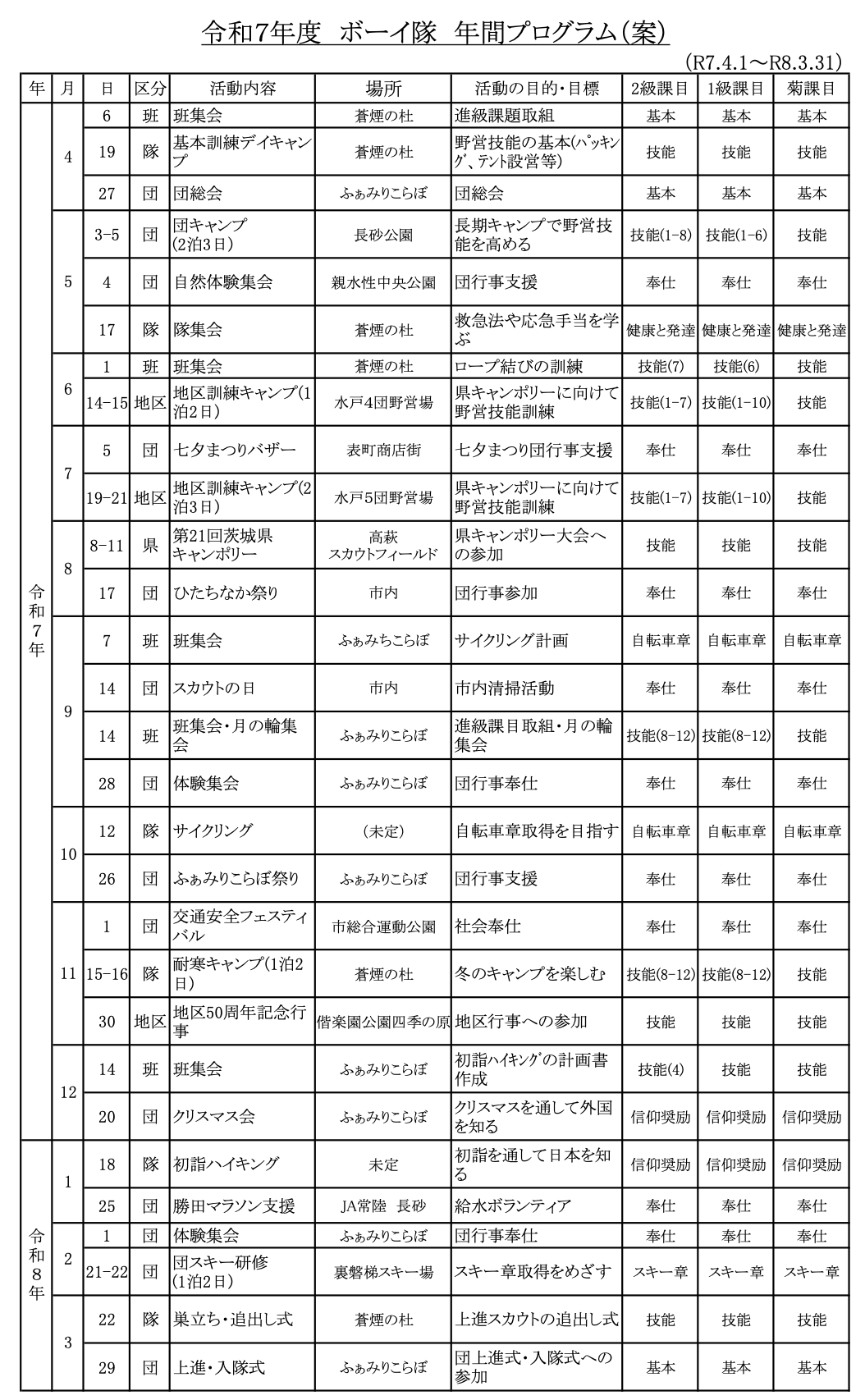 「スカウト」とは、「先駆者」のことで、自ら率先して幸福な人生を切り開き、社会の先頭に立とうとする少年という意味を持っています。スカウティングは、キャンプや奉仕活動を通じて学区、学年を超えた、地域社会における活動です。青少年が自分の知識、および探究心、発見や理解を広めたいという願望を満たしていくものなのです。
